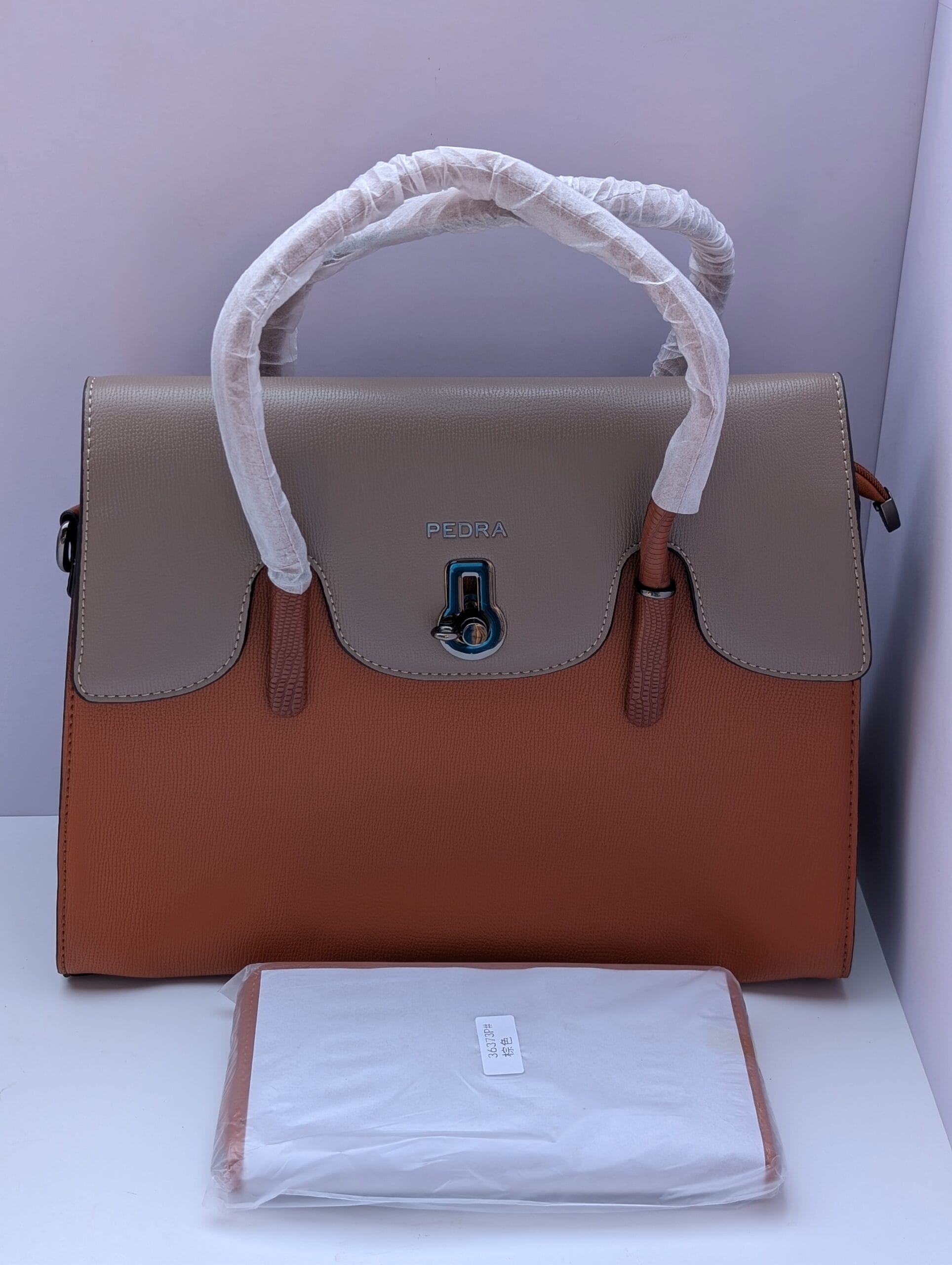 The Two-Tone Ladies Handbag that effortlessly combines style and sophistication is right here. This Chic Two-Tone Ladies Handbag from Nansey Emporium is the kind of bag that does not need to shout to be noticed. With its warm tan brown body, soft taupe flap, and distinctive twist lock closure, this bag speaks the language of quiet confidence — and every woman who sees it will know exactly what it is saying.