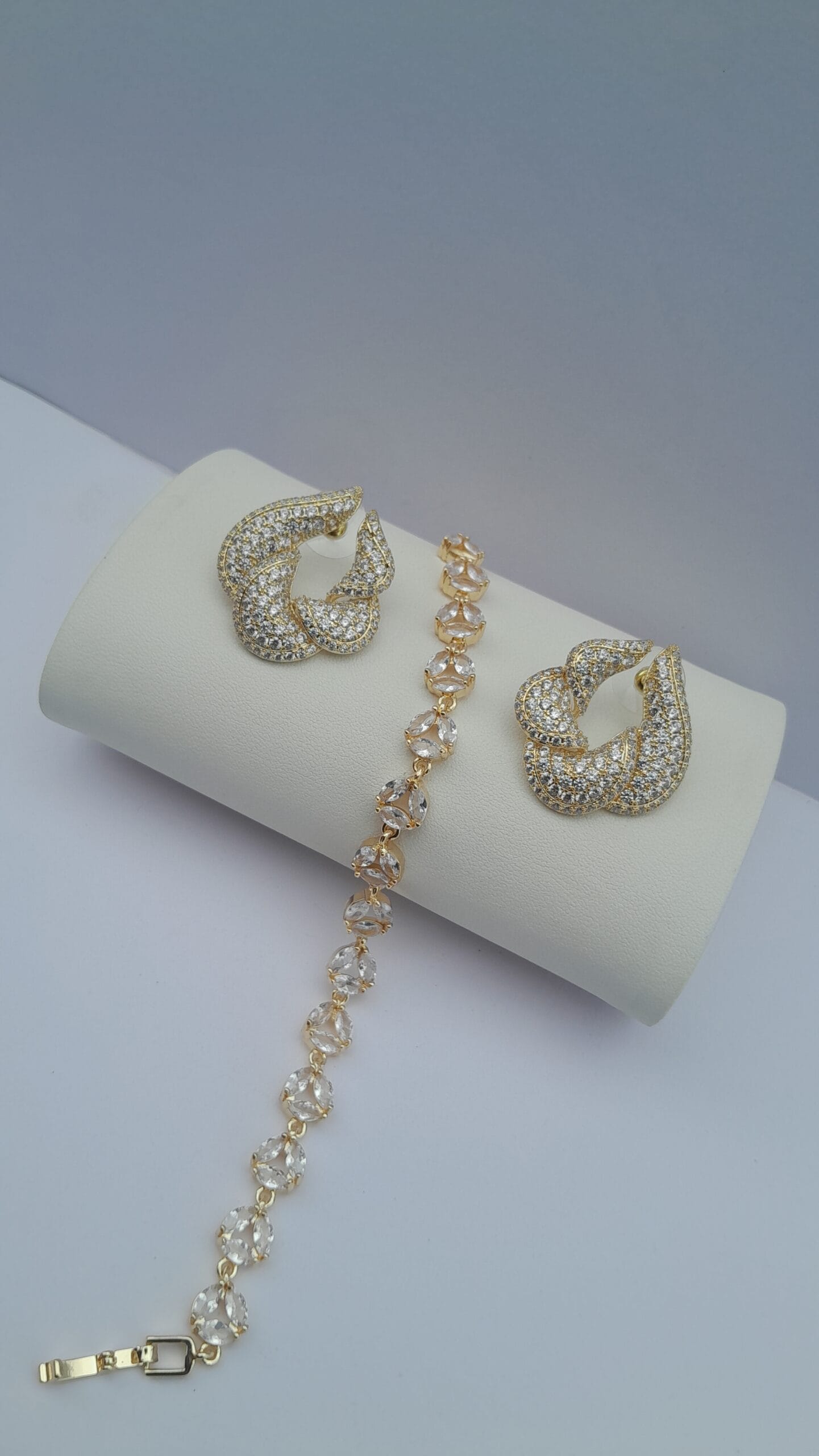 Ladies Gold Bracelet with Earrings – Elegant 2-Piece Jewelry Set with Silver Accents