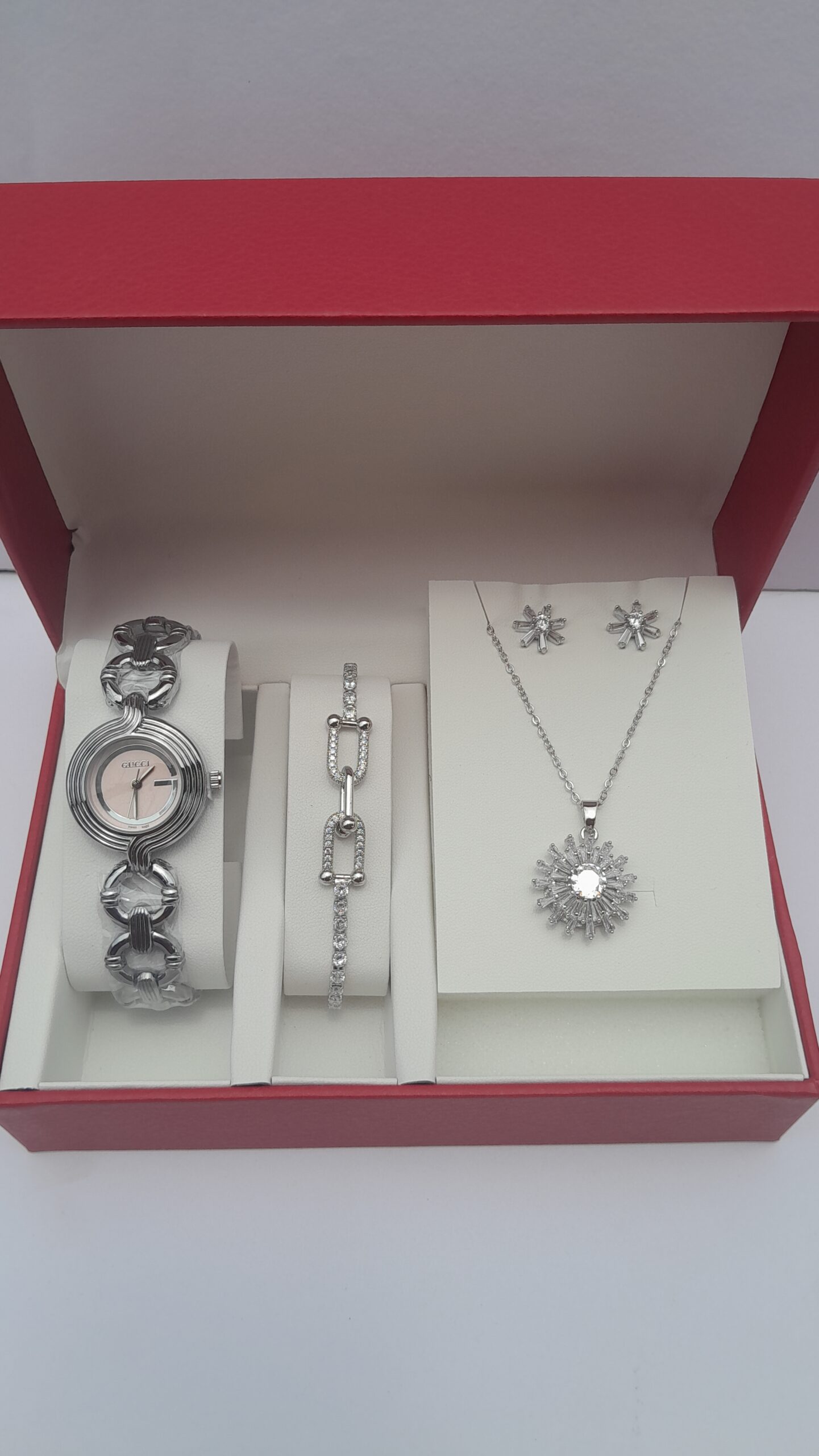 What distinguishes this Ladies Silver Jewelry Set Elegant as truly exceptional is the exquisite harmony achieved between each carefully selected piece. The accompanying silver bracelet embodies the same design philosophy and quality standards as the watch, creating seamless visual flow that enhances your overall sophisticated presence.