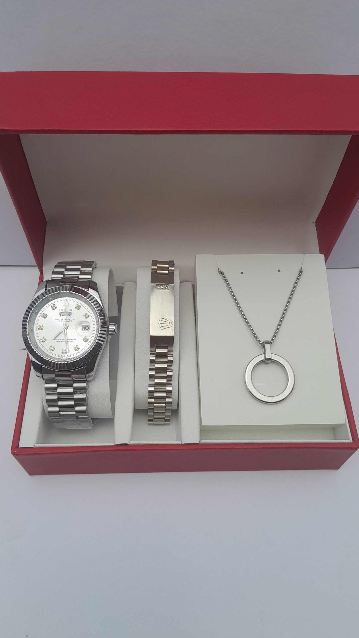 Discover timeless sophistication with our premium Silver Men’s 3 in 1 Set, featuring three perfectly coordinated pieces – an elegant watch, sophisticated chain, and stylish bracelet. This classic collection offers refined style and exceptional quality for the discerning Ghanaian gentleman.